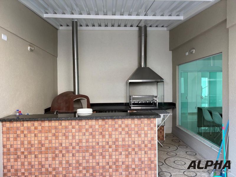 Espaço gourmet com churrasqueira e forno de pizza