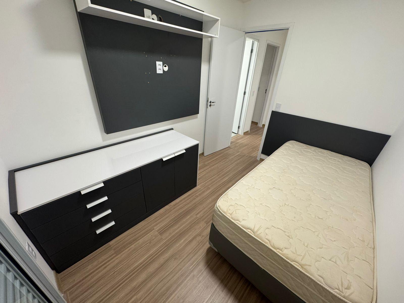 Acabamento: Piso frio na cozinha, banheiros e varanda; piso laminado na sala e quartos; bancadas em granito; esquadrias linha premium de alumínio branco; iluminação toda em LED; armários modulados em MDF em todos os cômodos; TV LED 48 na sala de estar; espelho e box de vidro nos banheiros; aquecedor a gás instalado.