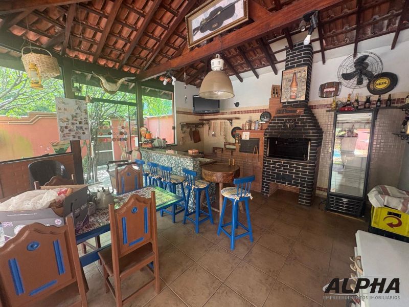 Área gourmet, com piscina, churrasqueira, banheiro, quarto extra, que pode ser despejo ou escritório